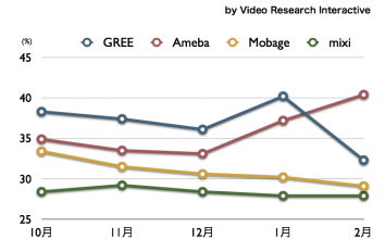 GREE, Ameba, Mobage, mixi 2011年2月最新VRI調査 〜 携帯視聴率のデータを公開します
