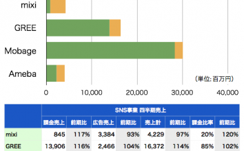 【2011年5月最新版】直近決算発表に基づくmixi、GREE、Mobage、Amebaの業績比較