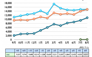 mixi, Twitter, Facebook, Google+ 2011年8月最新ニールセン調査。Facebook訪問者、ついに1000万人超へ