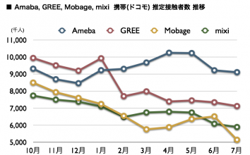 Ameba, GREE, Mobage, mixi, 2011年7月最新の携帯ネット視聴率を公開