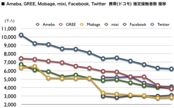 Ameba, GREE, Mobage, mixi, Facebook, Twitter, 2012年4月 最新ドコモ携帯ネット視聴率