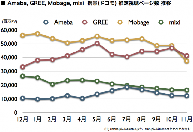 ・ 直近決算発表に基づくmixi、GREE、Mobage、Amebaの業績比較 (2011/11)